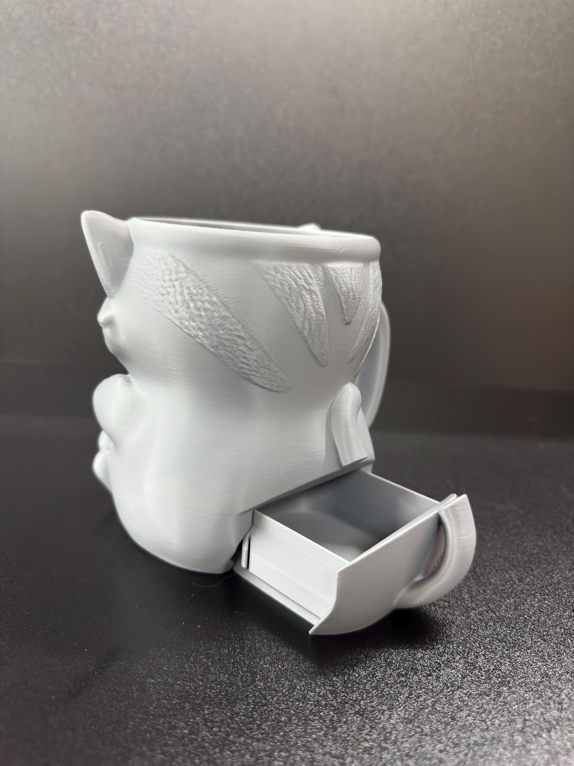 Title: Cat Ice Cream Pint Holder 3D Printed Cat with Spoon Slots and Hidden Drawer Cute Gift for Cat Lovers and Ice Cream Fans